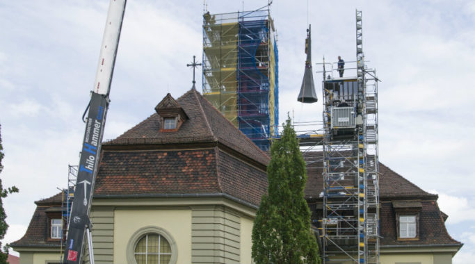 Zeitkapsel im Glockenturm der katholischen Klinikumskirche